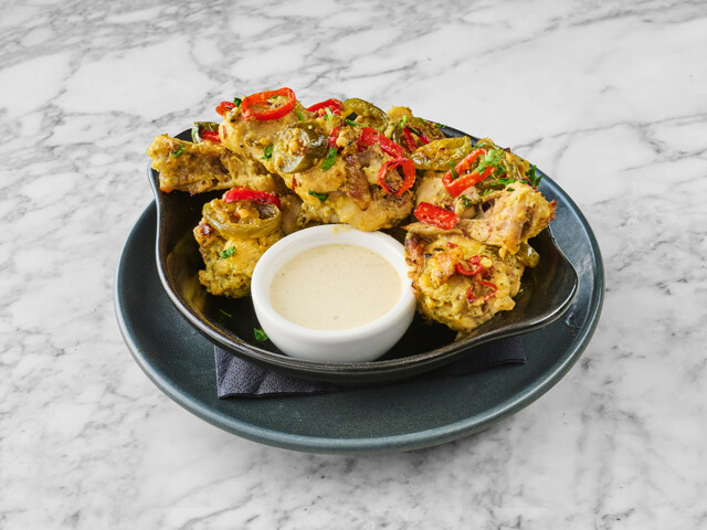 Can you handle the heat? Fiery wings coated in chilli flakes, red chilli and jalapeños, with a cooling blue cheese dip